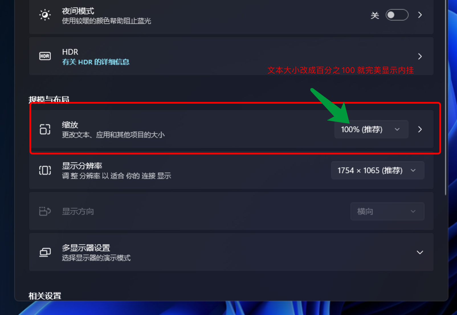 桌面空白位置右键显示设置--修改文本改成百分之100%